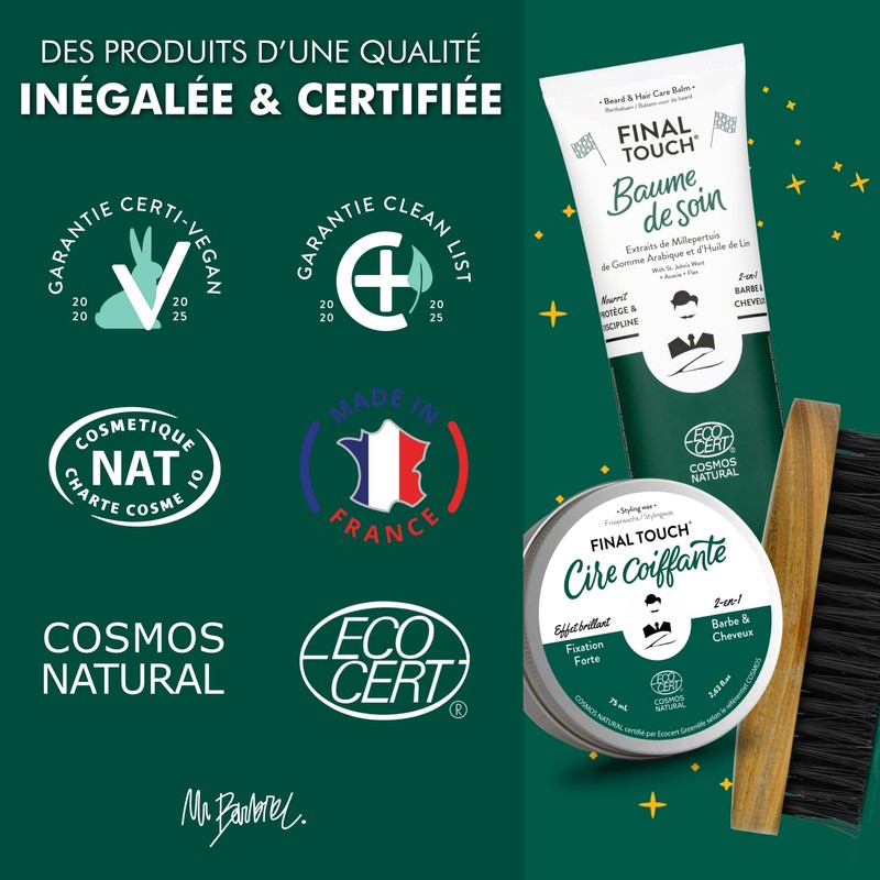 - Healthy products: Finally styling products that will not harm your mane! Mr. Barbier has taken on the challenge of providing effective, sensory and above all hair fiber friendly products. Natural, vegan and French, this is the cream of the cream combined in this beautiful set