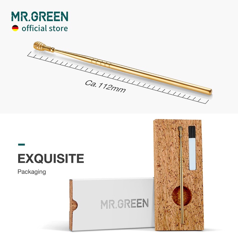 MR.GREEN 360 Spiral Massage Ear Pick - Stainless Steel Flexible Ear Canal Cleaner and Care Tools (Golden)