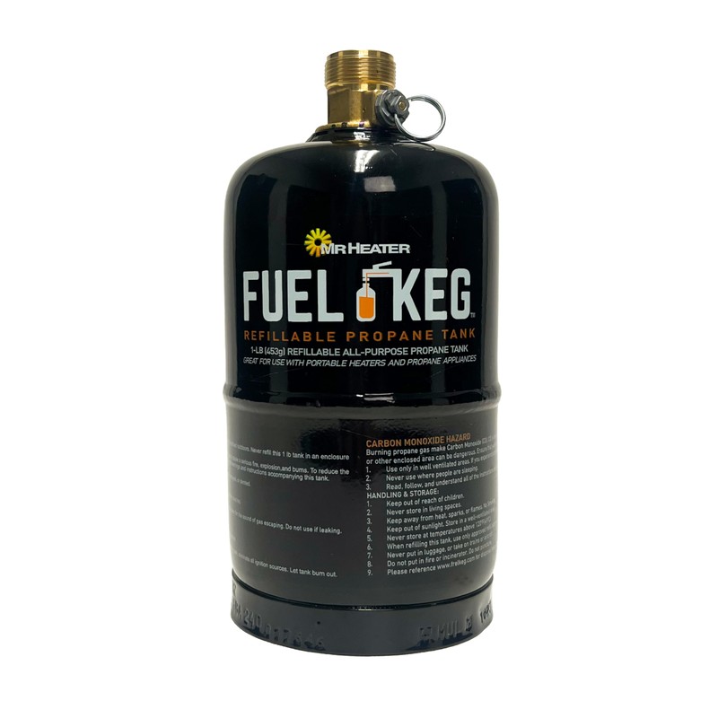 - PLEASE NOTE: Fuel Keg cylinder arrives EMPTY. The cylinders only fill with the Mr. Heater Fuel Keg Propane Tank Refill Kit (F), sold separately.