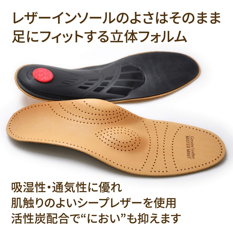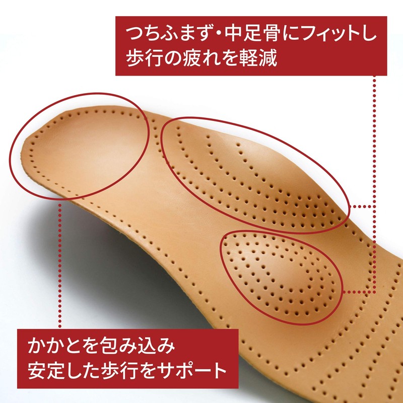 • Features: Excellent moisture absorption and fits the arch of the foot. Supports the foot with a three-dimensional form that supports the arch of the arch. Sheep leather (sheep leather) has a smooth texture