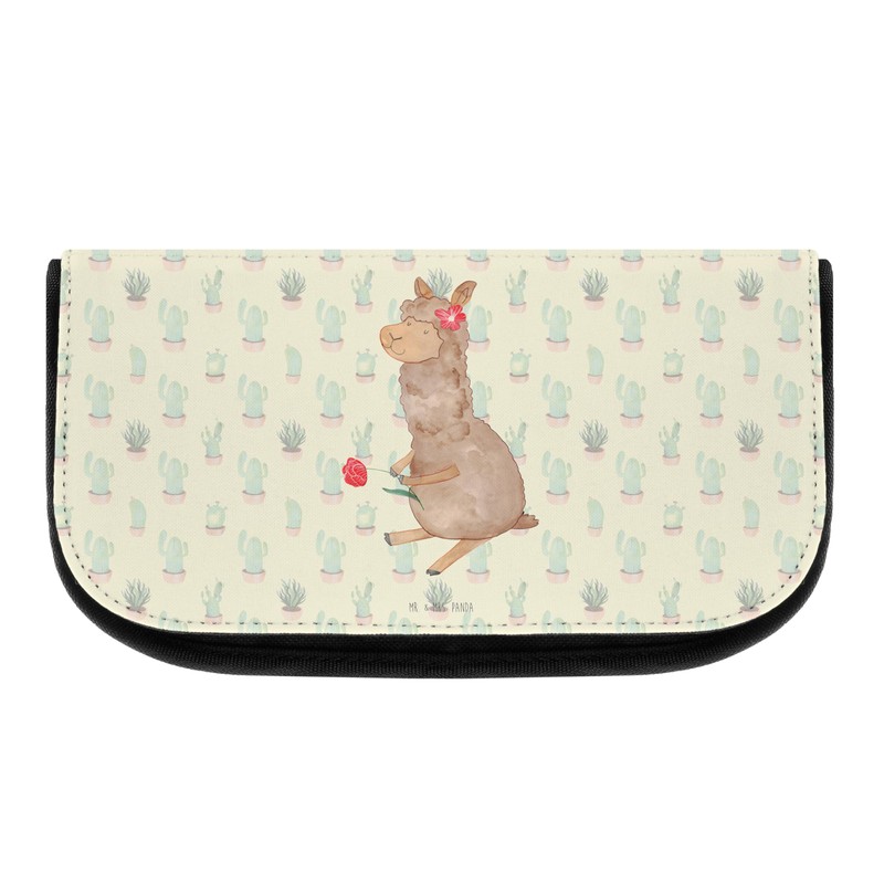 Mr. & Mrs. Panda Cosmetic Bag Alpaca Flower, Green, Hand Drawn