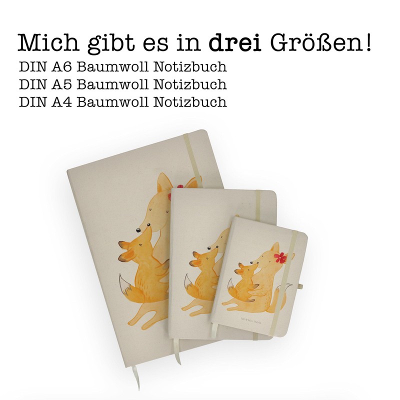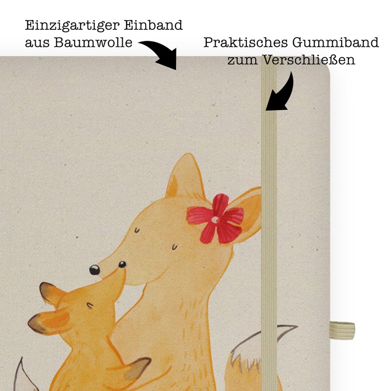 Mr. & Mrs. Panda notepad, notebook, DIN A5 cotton notebook, fox mum and child, colour: transparent