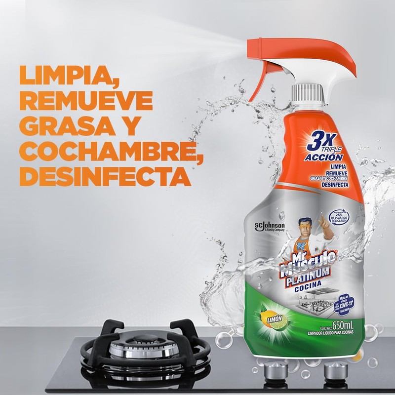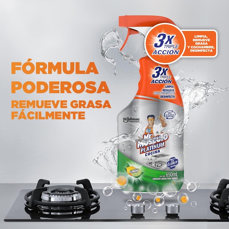 Mr. Músculo Platinum Limpiador Líquido Para Cocinas, Desengrasante, Aroma Limón, 650mL
