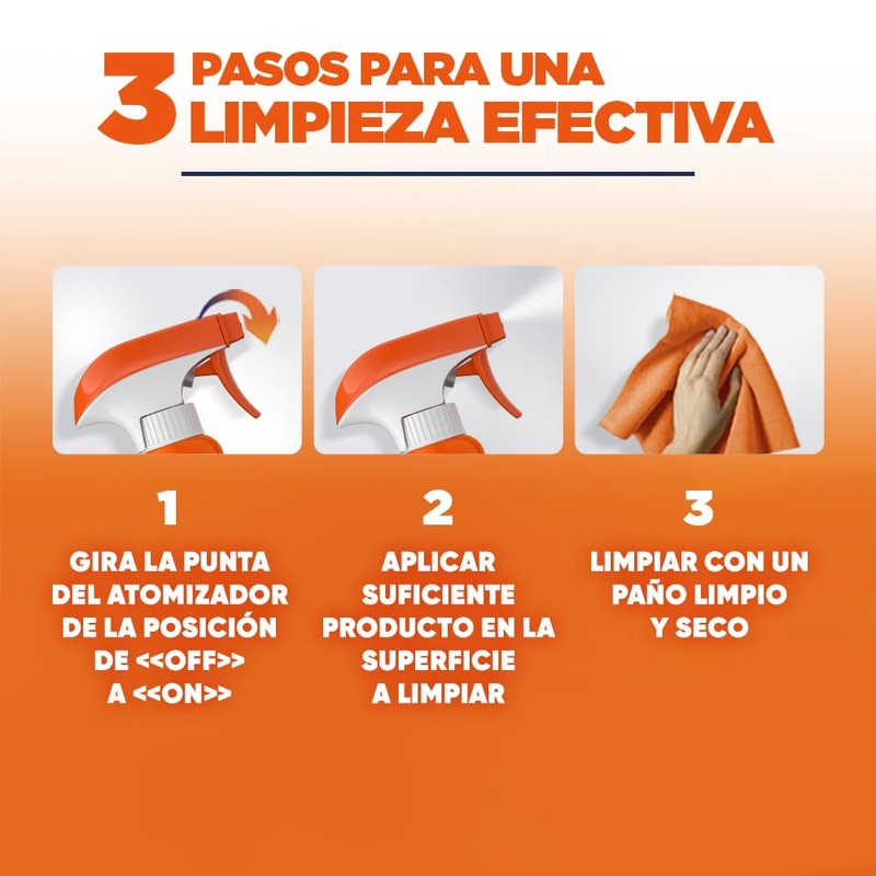 - Limpia, remueve grasa y cochambre, desinfecta.