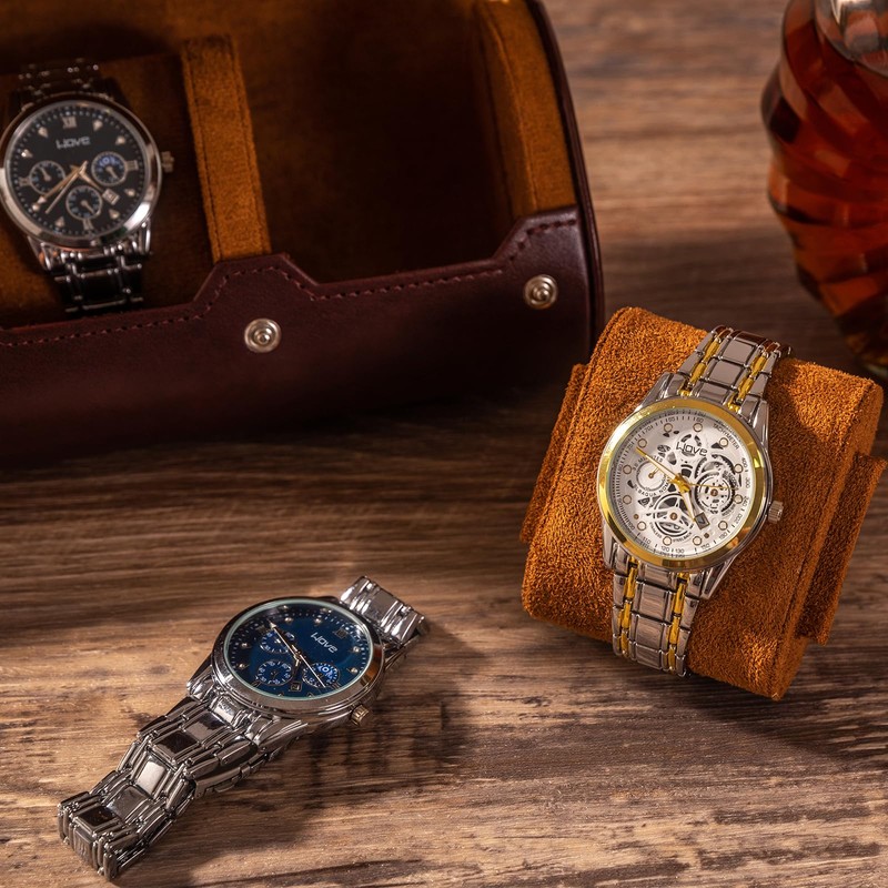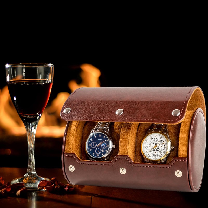 Mr.Okay 2 Watch Travel Case -Classic Leather Watch Case With Perfect Texture....