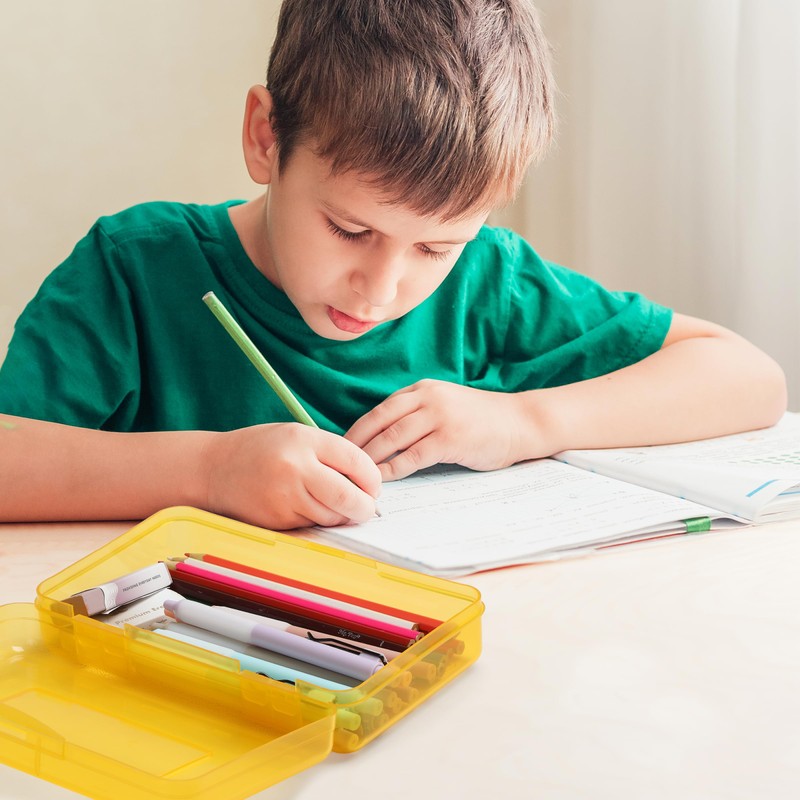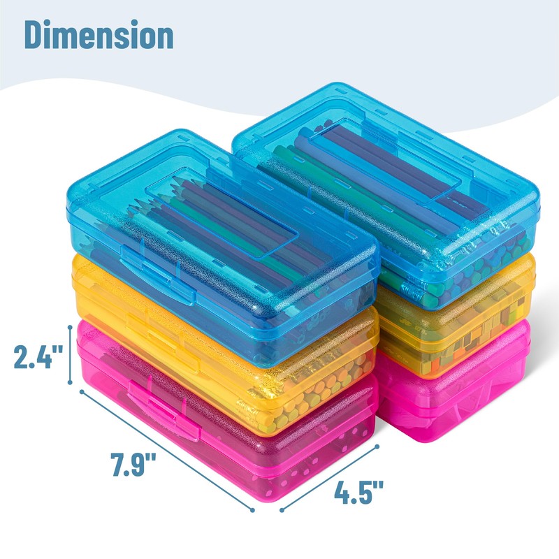 Mr. Pen- Clear Pencil Boxes, 6 Pack, Snap-Tight Lid, Plastic Pencil Box Organizer, Blue/Yellow/Pink, 7.9"x4.5"x2.4"