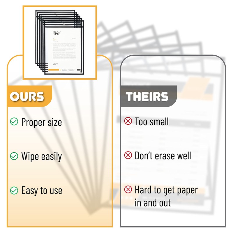 Mr. Pen- Dry Erase Pockets, 6 Pack, 10.2 x 14 Inches, Black, Reusable Plastic Sleeves for Paper, Clear Shop Ticket Holders, Dry Erase Pocket Sleeves, Dry Erase Sleeves, Clear Document Sleeves