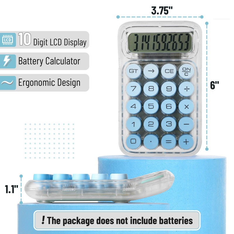 Mr. Pen- Mechanical Switch Calculator, 10 Digits, Blue Calculator, Transparen...