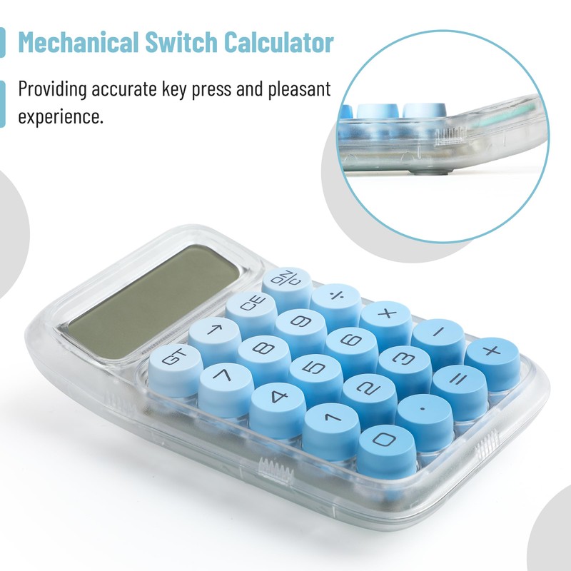 Mr. Pen- Mechanical Switch Calculator, 10 Digits, Blue Calculator, Transparent Body, Large LCD Display, Big Buttons Mechanical Calculator Desktop Calculator, Cute Calculator, Aesthetic Calculator