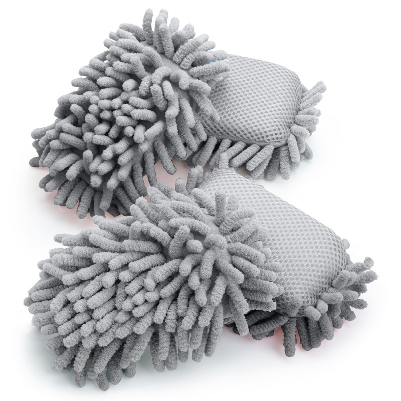 - This 4-pack features a dual-sided design—one side with soft microfiber shags to lift and trap dust, and the other with a textured mesh for gentle scrubbing.
