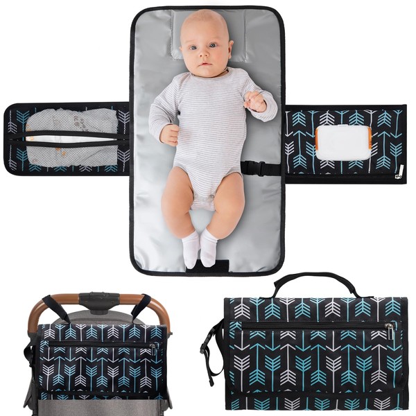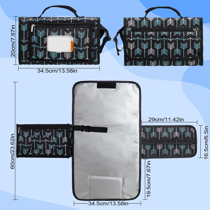 - El exterior adopta 300d Pu absorbente de agua y el interior adopta PEVA impermeable, que es fácil de limpiar. Tiene estampados de flecha para que madres y padres se muestren orgullosos y tiene mucho sentido como regalo de regalo para bebés neutros para niñas o niños. ¡¡ el tamaño plegado es de 13,8 x 8,4 pulgadas, adecuado para cualquier bolso o mochila de pañales con pulsera de pañal, para cochecitos de bebé, muñecas o juguetes!