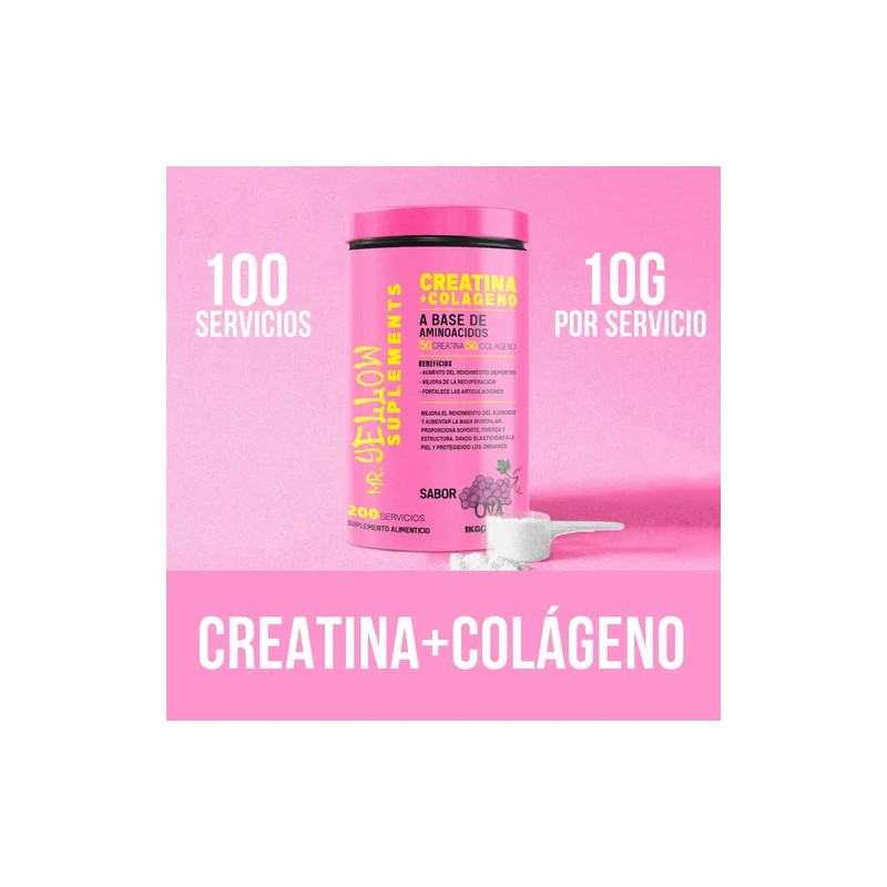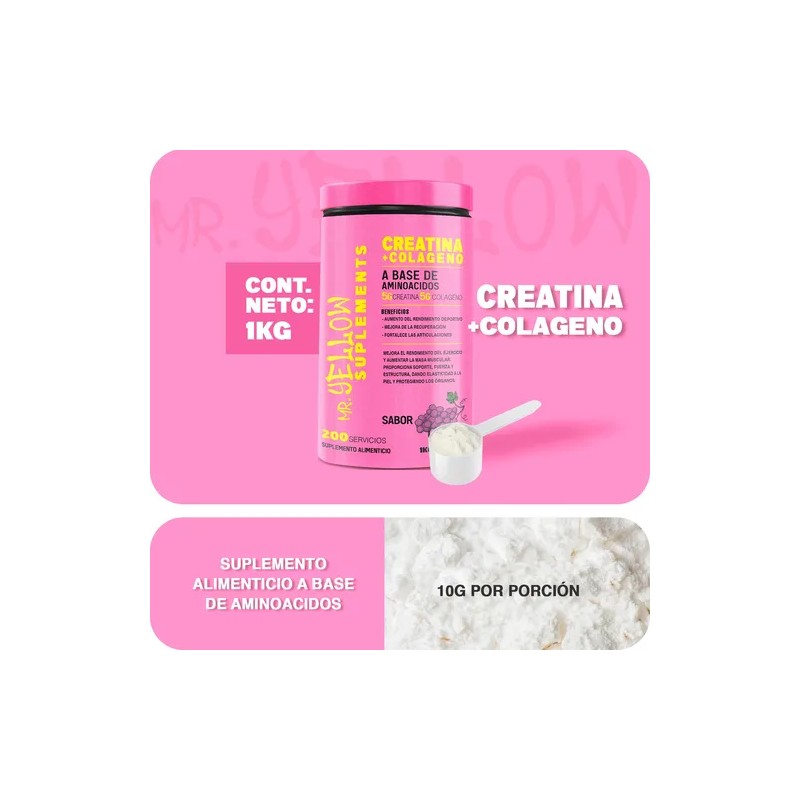 Mr. Yellow Creatina + Colgeno 1kg 200 Servs Uva