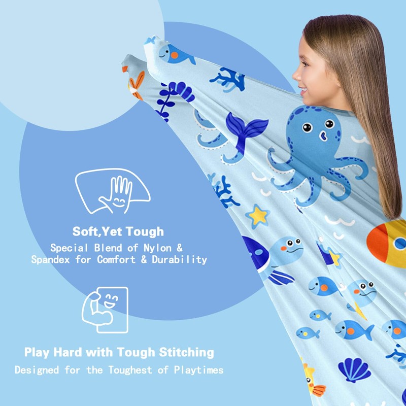 Mrazqev Sensory Body Socks for ADHD Autism Kids - Ocean Theme Improve Sensory Processing Sox with Whale Octopus Fish -Improve Focus for Child (Small)