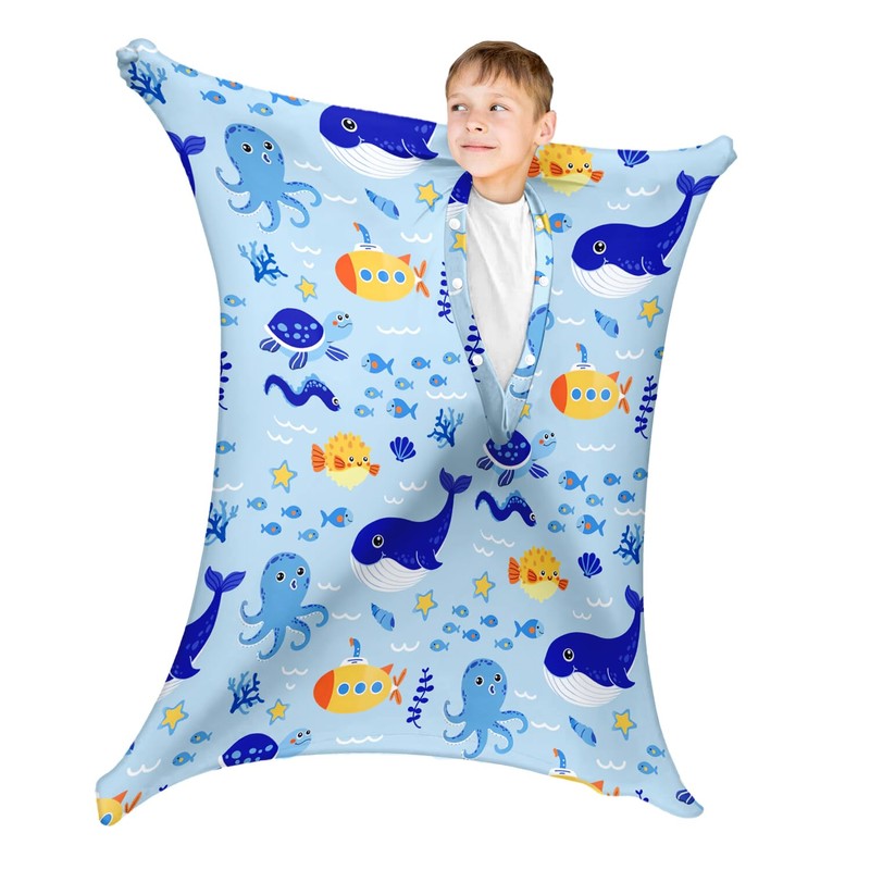 Mrazqev Sensory Body Socks for ADHD Autism Kids - Ocean Theme Improve Sensory Processing Sox with Whale Octopus Fish -Improve Focus for Child (Small)