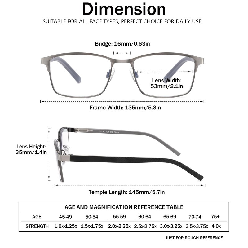 2. Stylish men's reading glasses feature 98% High Transmittance anti scratch lenses,no blurry, give you a clearer vision. Lightweight metal frame reading glasses with spring hinge ensure comfortable fit without pinching face.