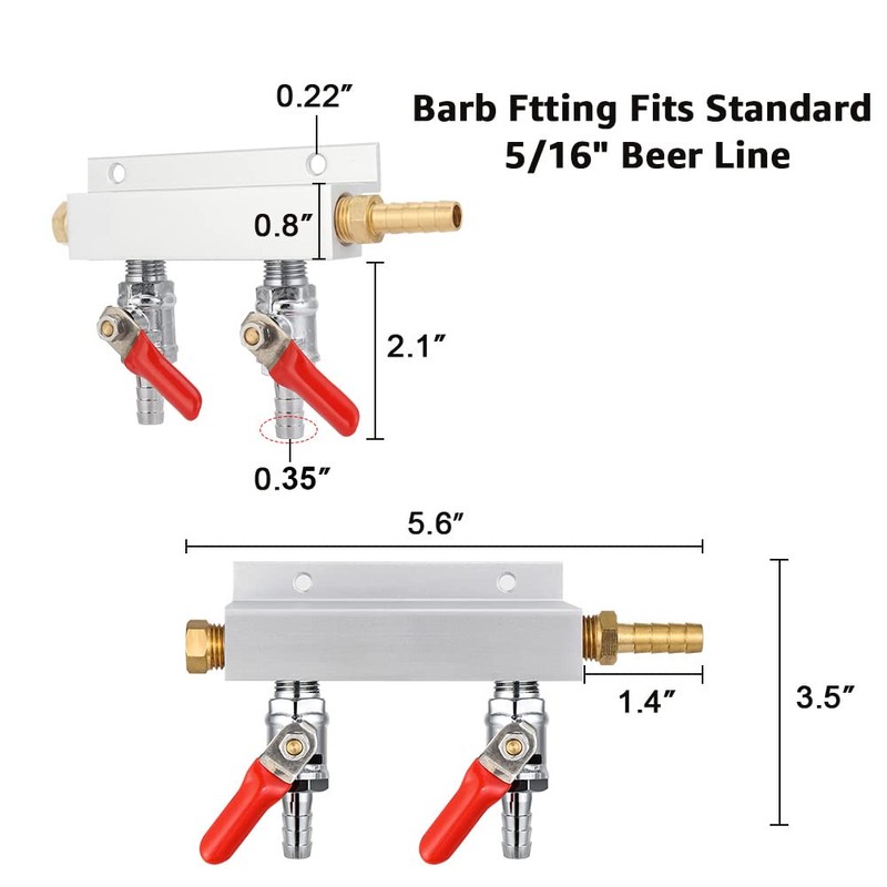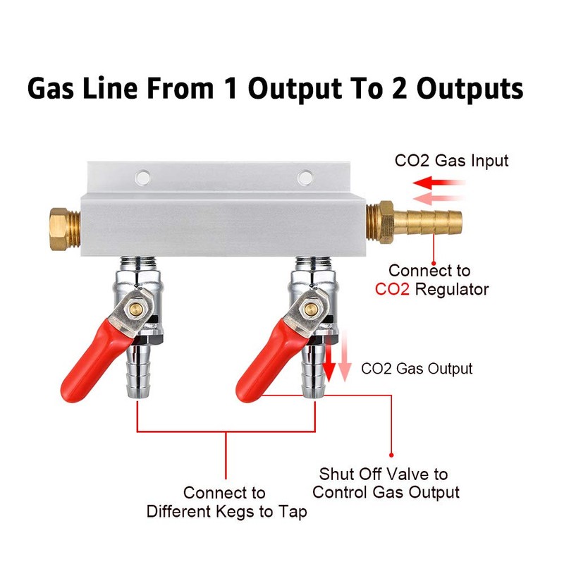 - 【LOW COST CONNECTING EXTENSION】The gas manifold is designed with two 5/16’’ barb fitting outputs, which allows splitting co2 gas line from 1 output to 2 outputs to brewing keg, no need of high cost multi-connection regulator!