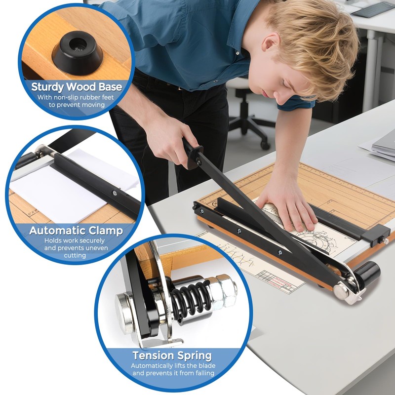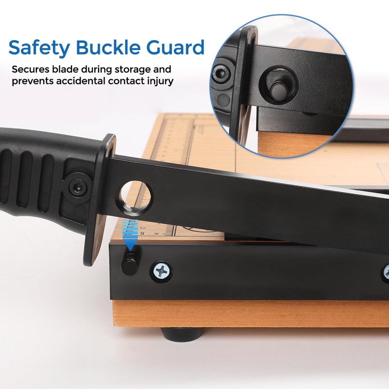 - SAFETY FEATURES – The blade latch hook securely locks the arm when not in use, while the protective guard rail ensures user safety during operation. Perfect for use in offices, schools, homes, printing shops, photo studios, and more.