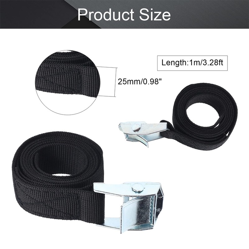 MroMax 0.98" Width x 3.28ft Length Lashing Straps Polypropylene Cam Buckle Lashing Straps 250Kg Load Cargo Tie Down Strap 25mm x 1M for Moving Cargo Black Tone 2Pcs
