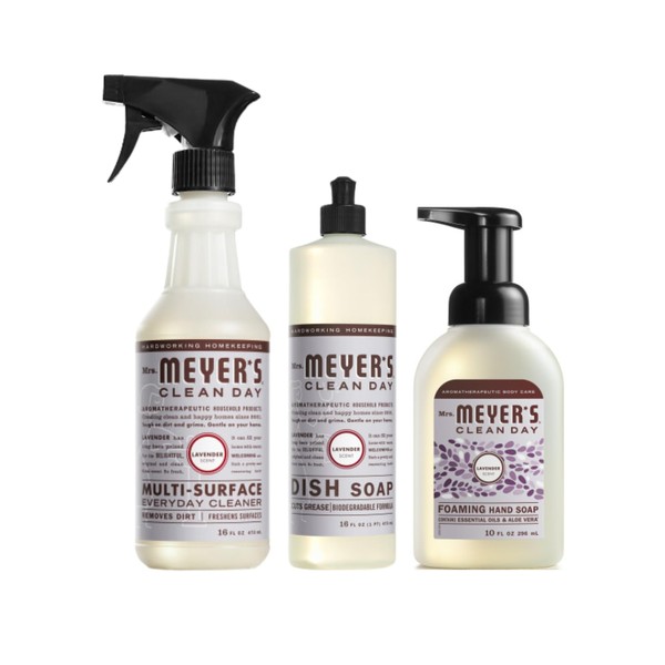 MRS. MEYER'S CLEAN DAY Kitchen Set, Multi-Surface Cleaner, Dish Soap and Foaming Hand Soap, 3 CT (Lavender)