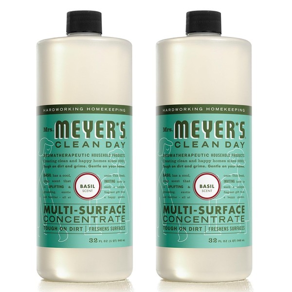 MRS. MEYER'S CLEAN DAY Multi-Surface Cleaner Concentrate, Use to Clean Floors, Tile, Counters, Basil, 32 fl. oz - Pack of 2