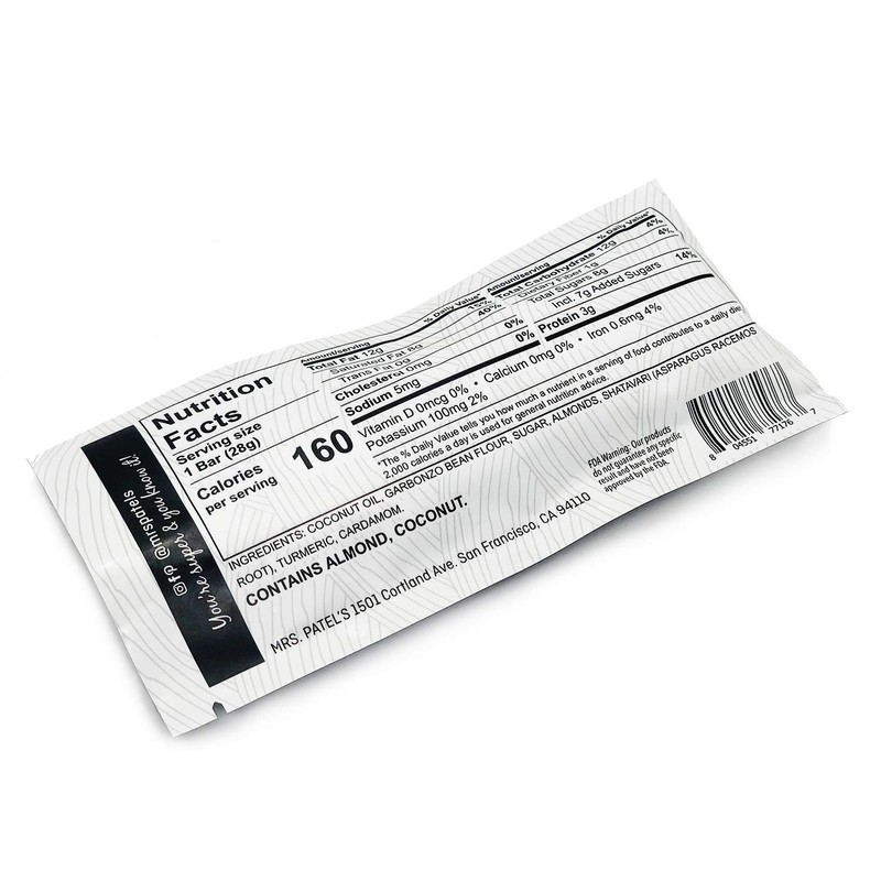 • Individually wrapped bars with plant-based protein, healthy fats, shatavari & turmeric.