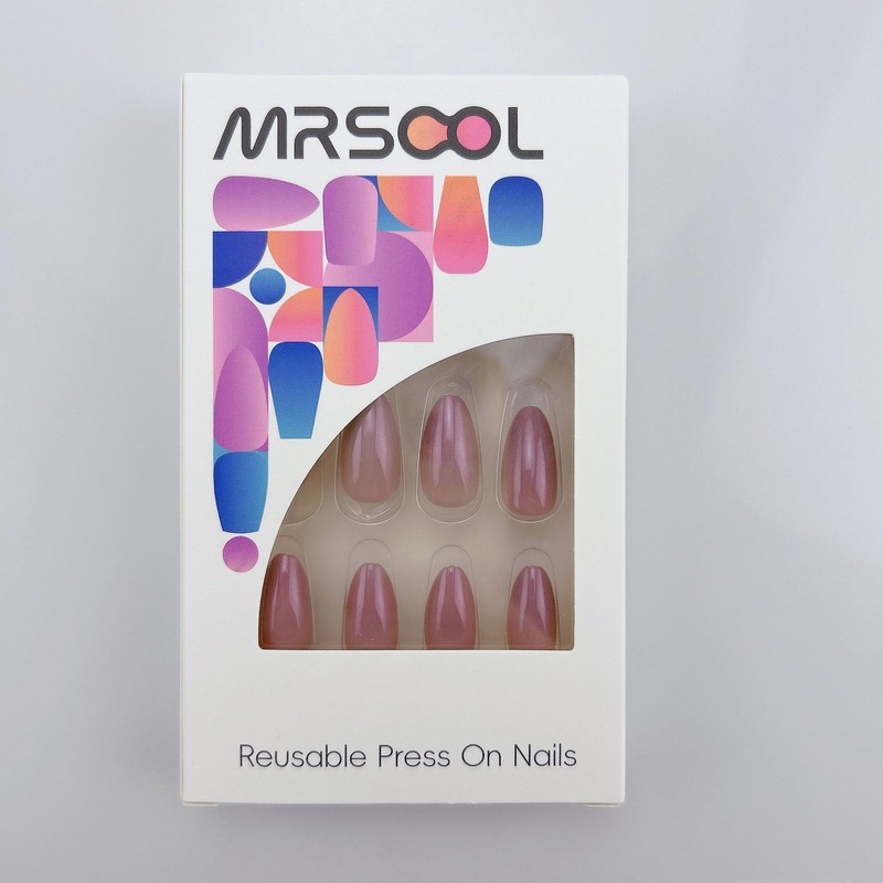 MRSCOL Press on Nails-Glitter Taro Pink,Press on Nails Almond,Press on Nails Short Reusable 32pcs Nail Kit with Glue