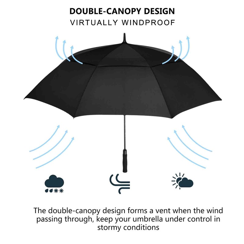 - [WINDPROOF ] Heavy duty design and double canopy structure allows the wind to pass from the bottom up, it won't easily flip up, providing maximum protection even in harsh condition.
