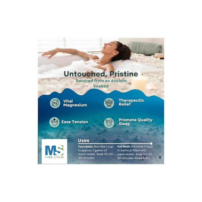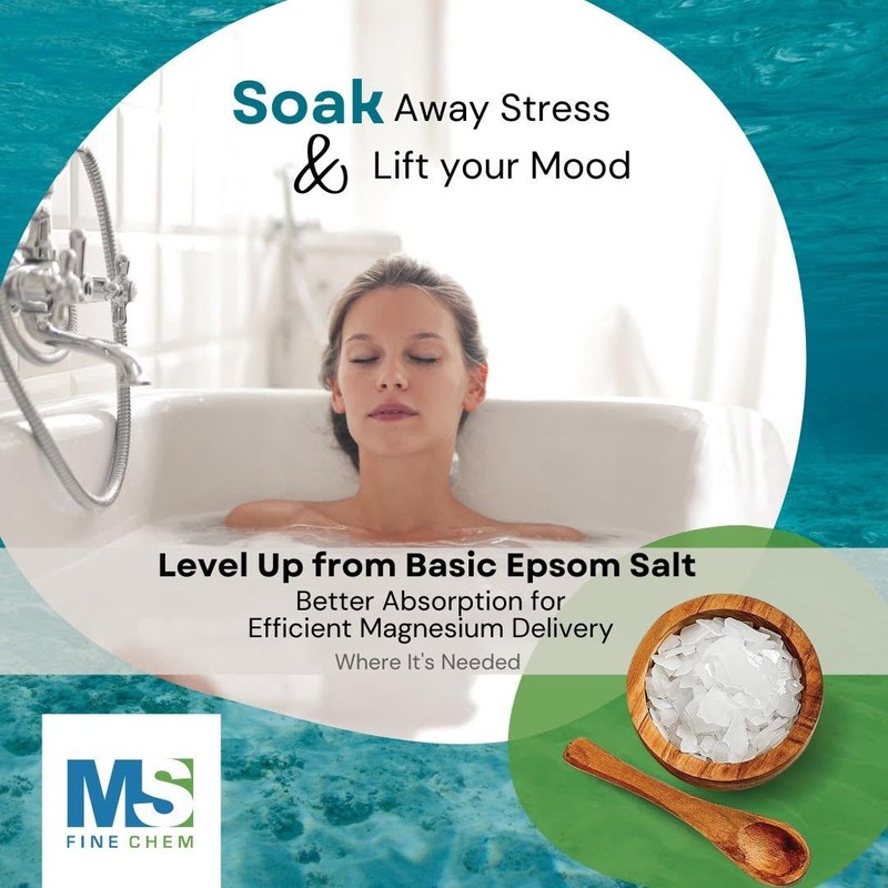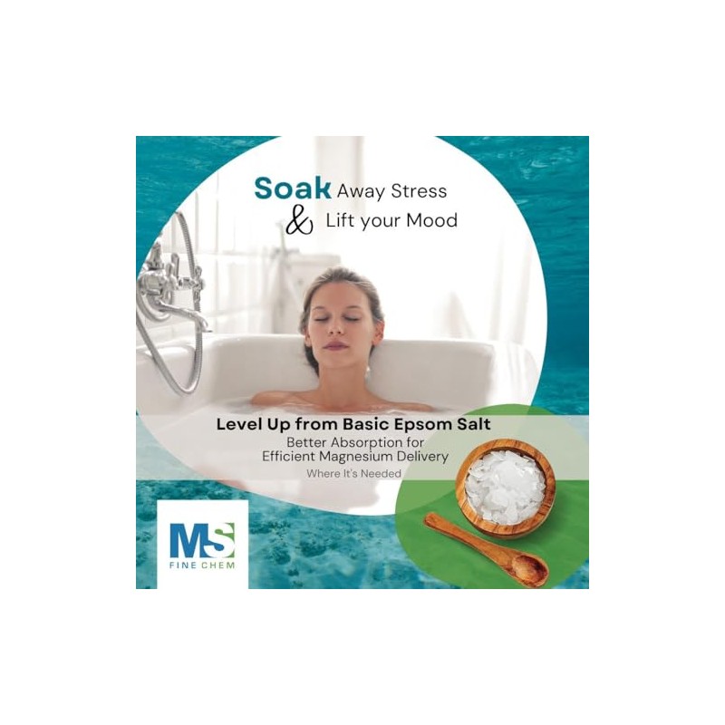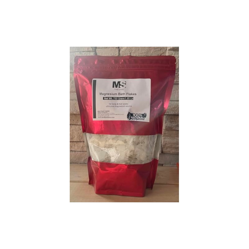 MS Finechem Pure Magnesium Flakes, 1.65 lb| Great for Foot & Body Bath Soaks | Natural Magnesium Chloride Minerals | Better Absorption Over Epsom Salt | Relaxation & Skin Hydration Support, White