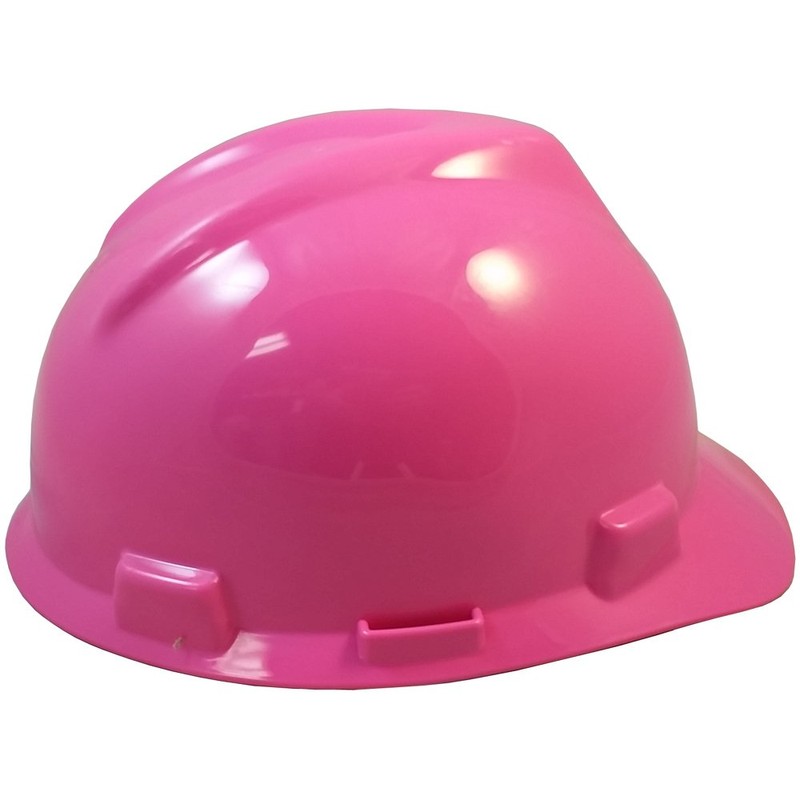MSA V-Gard Cap Style Hard Hats w/FasTrac III Suspensions and Handy Tote Bag - Hot Pink