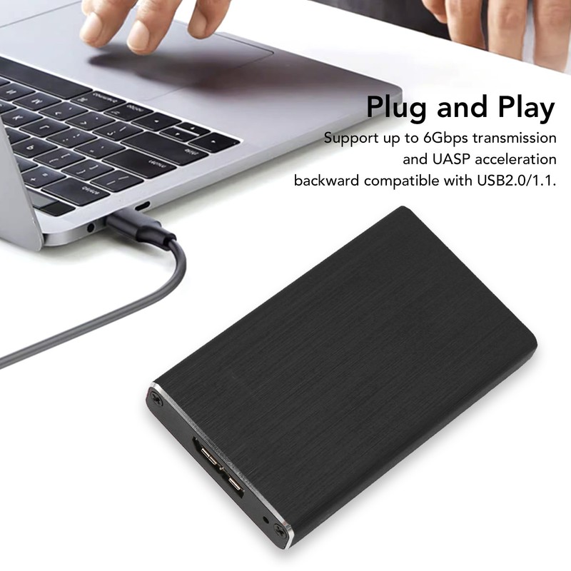 MSATA to USB 3.0 Enclosure 6Gbps UASP Plug and Play LED Indicator Micro USB to MSATA SSD Enclosure for Computer Black (Not Inclube Hard Disk)