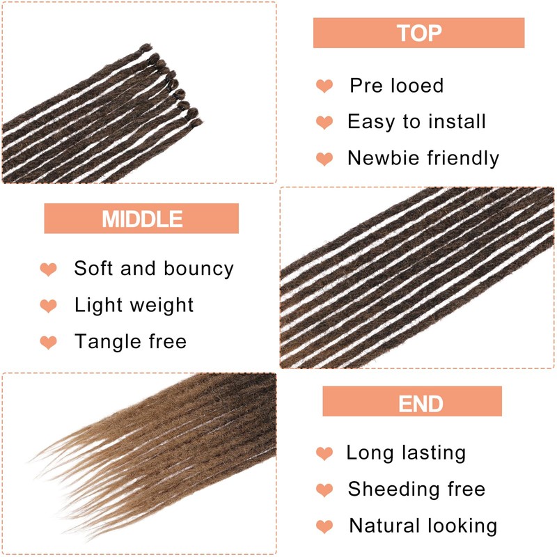 - 【Advantages】Dreads are Pre-looped, Affordable,Easy to install,Light weight,Long-lasting,No smell,Soft and does not irritate the scalp.