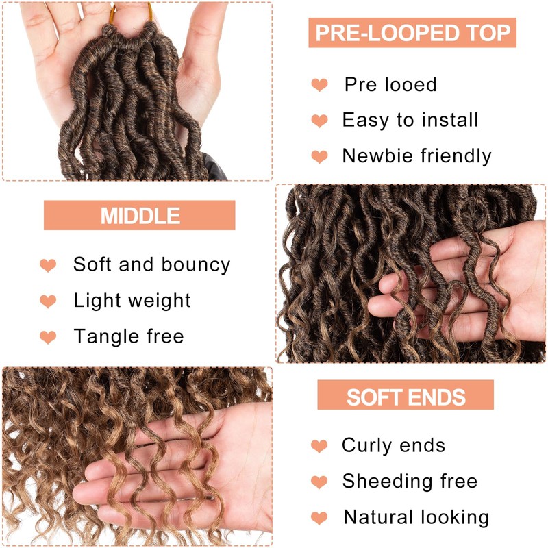 - Material and advantage: Goddess faux locs crochet hair is made of low temperature flame-retardant synthetic fibre, it is very well taken care of, easy to install, natural appearance, no smell, not easy to knot, use longer, very beginner friendly.