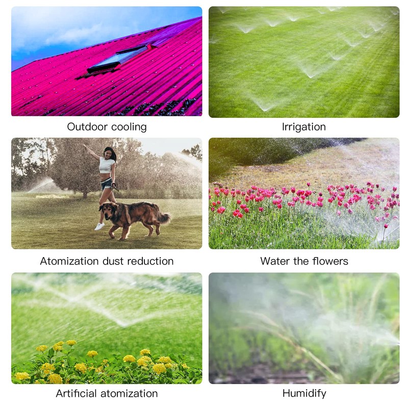 - Application: This Misting Nozzle great for agriculture, lawn, garden, patio, greenhouse, swimming pool misting fog cooling/irrigation, watering, greenhouse, humidification, balcony cooling, irrigation.