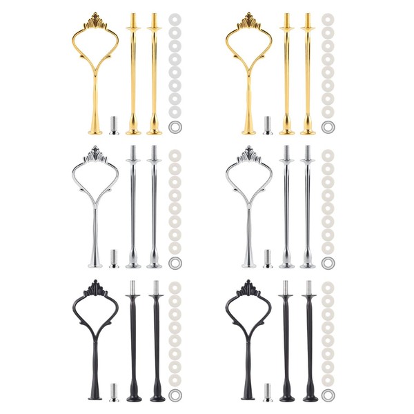 MSDADA 6 Set Tiered Tray Hardware for Cake Stand Mold Crown 3 Tier Cake Stand Fittings Hardware Holder for Wedding and Party Making Resin Cupcake Dessert Platter Serving Stand (Gold & Silver & Black, M)