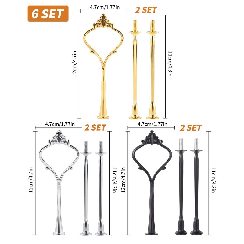 - PackageContains 2 Set Gold+2 Silver+2 Set Black Cake stand fittings. Size is 4.72" x 1.77"(12cm x 4.5cm)