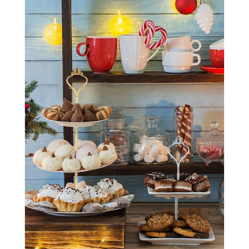 - Easy to AssemblyJust install the tiered tray into the cake stand, connect parts, and tighten all parts in a few minutes. You can disassemble it while not use, which is convenient for storage and carrying.