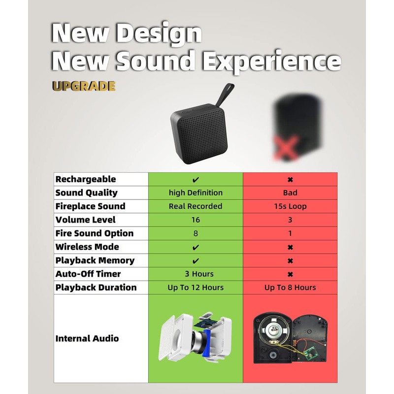 - [ Mini But Loud Enough, Upgrade Your Crackling Sound Effect] - Don't settle for a lackluster fireplace experience - upgrade the crackle with MSELTOS fireplace crackling sound maker. Just place the mini fire crackling sound machine near your electric fireplaces or gas logs. Let it make a realistic and loud crackling sound for your fake fireplace inserts.