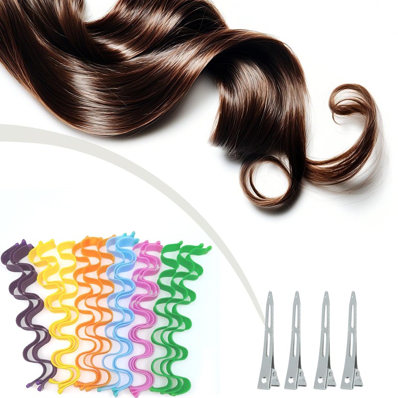 MSIHEY 30 Stück Lockenstäbe für langes Haar ohne Haarschädigung + 4 High Top Haarspangen + 1 Beauty-Kamm + 2 Styling-Haken, Spiral-Lockenwickler-Styling-Set ohne Hitze und ohne Haarschädigung