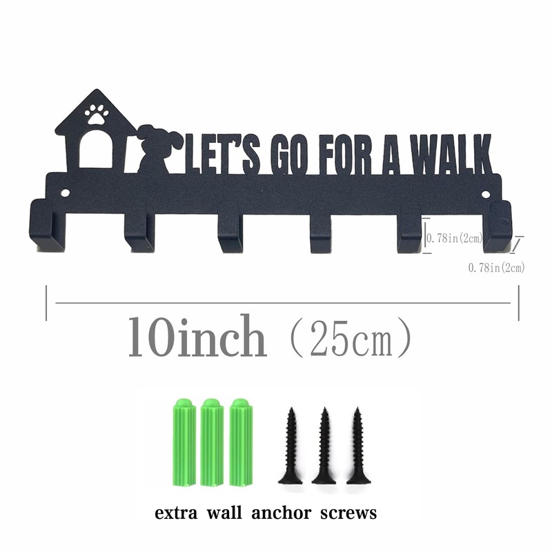 - - [Durable and Stylish Design] Made of high-quality iron material with a black matte finish, this 9.8-inch key holder is rustproof, waterproof, and stain-proof. The sleek "Let's go for a walk" design adds a modern touch to your entryway.