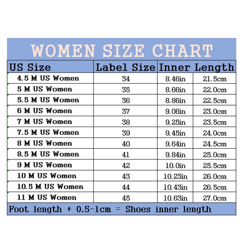 - SIZE ATTENTION: Please refer to size chart to choose corresponding size according to your feet length, If your feet is wide, please choose a larger size.