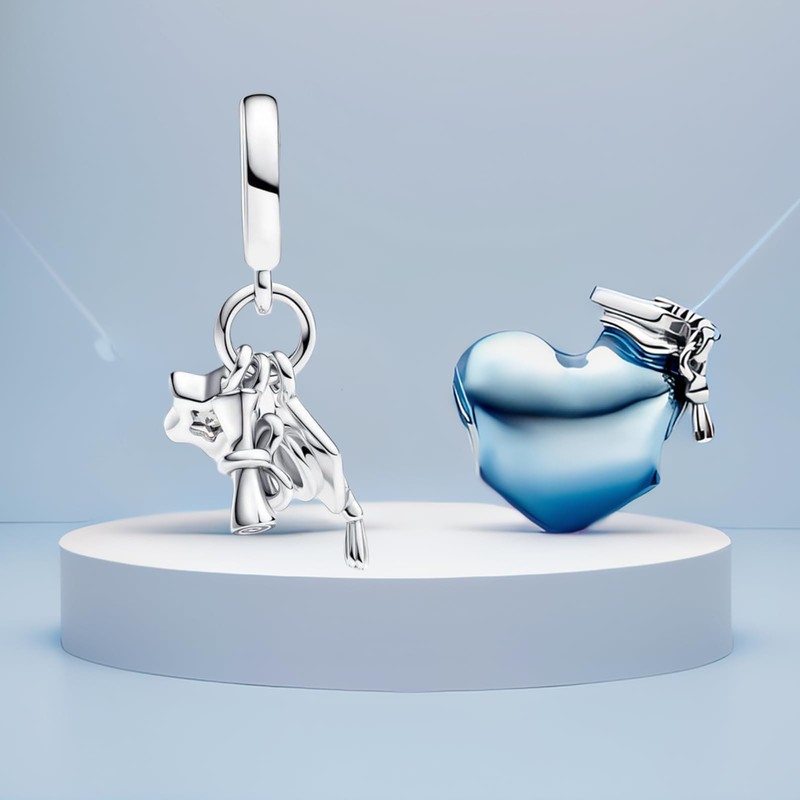 MSPOVOF Blue Graduation Heart & Triple Dangle Charms Bead for Bracelets and Necklaces 925 Sterling Silver Women's Graduation Jewelry Gifts 2 Piece/Package