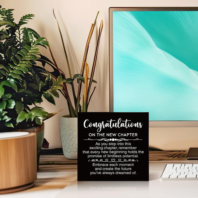 Msticey Congratulations On The New Chapter 6x6 Inch Motivational Wood Box Signs, Funny Office Wooden Plaque Desk Decor, Farewell Gifts For Colleagues Coworker, New Job Gifts, Job Promotion Gifts