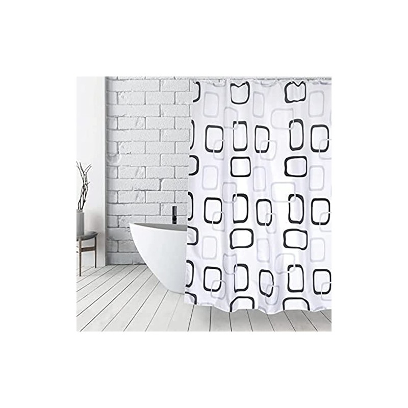 MSV Anti-Schimmel Duschvorhang - Anti-Bakteriell, waschbar, wasserdicht, mit 12 Duschvorhangringen - Polyester, „Quadrat“ 180x200cm