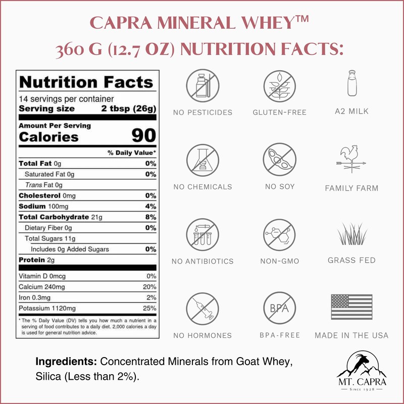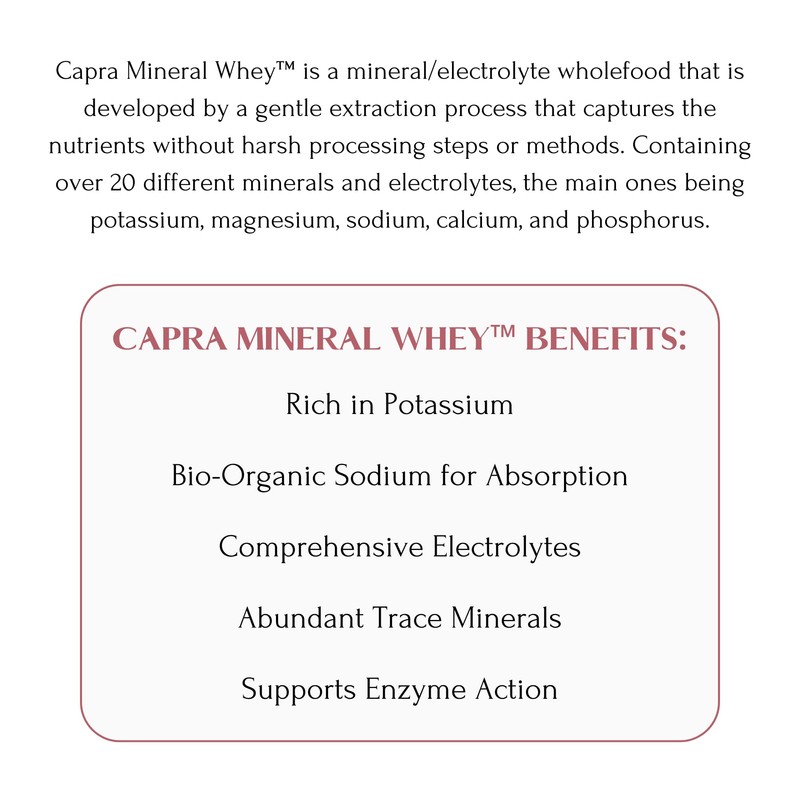 - EASY TO DIGEST - Capra Mineral Whey is sourced from goat whey and is alkaline and soothing to the digestive tract. The minerals are in a bio-available form, making it easy for your body to use and absorb