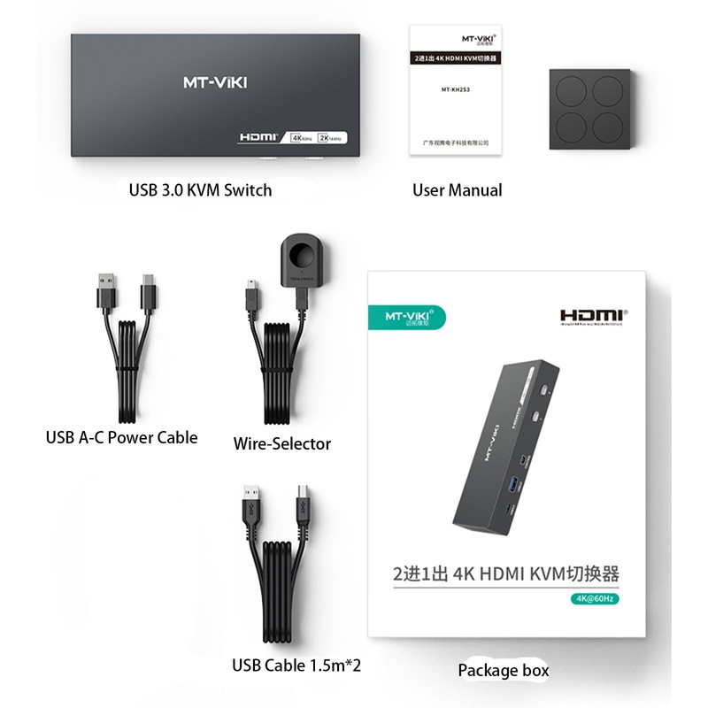 MT-VIKI USB 3.0 KVM Switch HDMI, (3 USB-A+ 1 USB-C), 4K@60Hz/2K@144Hz KVM Switcher, 2 Computers 1 Monitor KVM with 4 USB 3.0 Port
