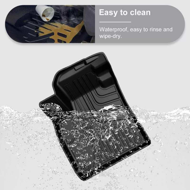 - ✔️【Easy To Clean】 Automobile floor liners are waterproof, stain resistant, durable and easy to clean. When the car floor liners get dirty, turn the floor liners upside down and shake, and the dirt and debris will come off. You can also wipe directly with a damp towel or remove the floor liners and wash them with water and dry them to restore them to new condition.