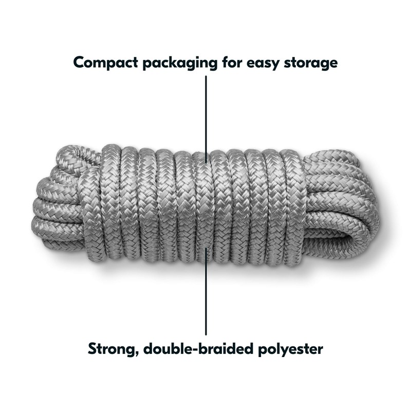 • HIGH QUALITY DOUBLE BRAIDED POLYESTER Quality is important when selecting a dock line. Double Braided Polyester provides strength and durability in addition to being oil, rot and mildew resistant.