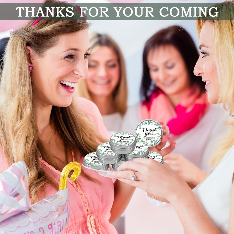 - Romantic Design: each scented candles gift set features the text [Thank You For Celebrating With Us] on the tin, accompanied by adorable eucalyptus leaves patterns, these elements are geared towards creating a warm, loving, and romantic atmosphere at your event that will leave a lasting impression on your guests
