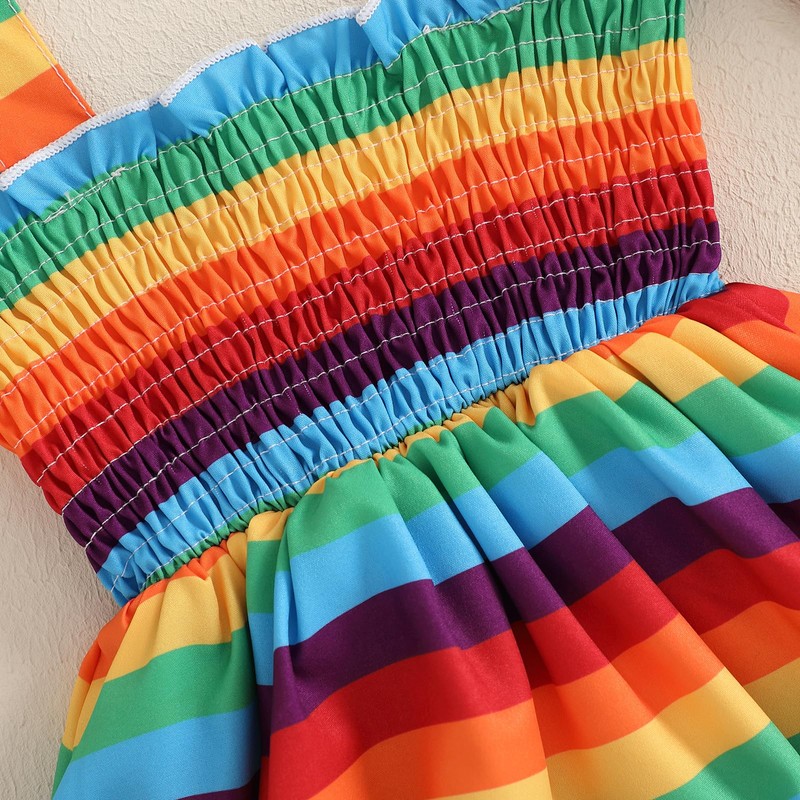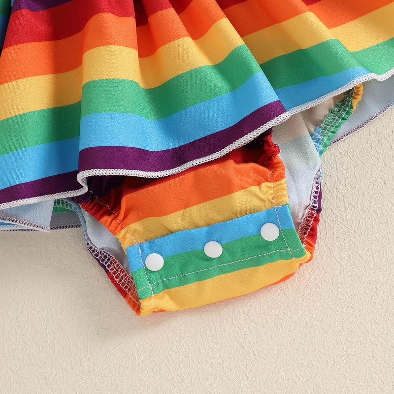 Mubineo Baby Girl Summer Clothes Floral Romper Dress Infant Sleeveless Rompers Skirt One Piece Boho Sun Dress Outfits (Rainbow Stripe A, 0-3 Months)