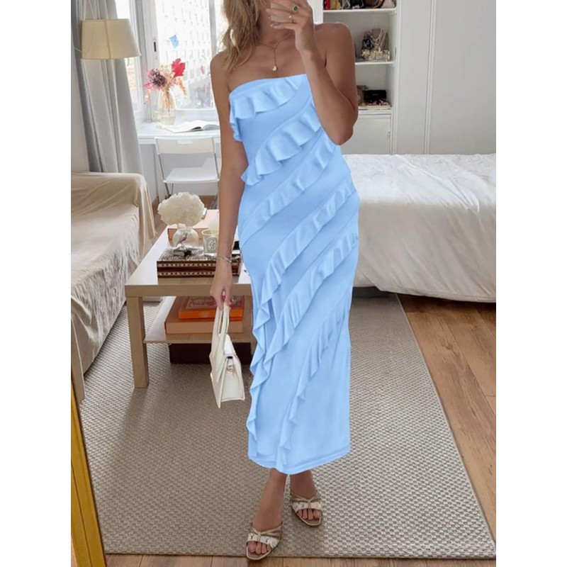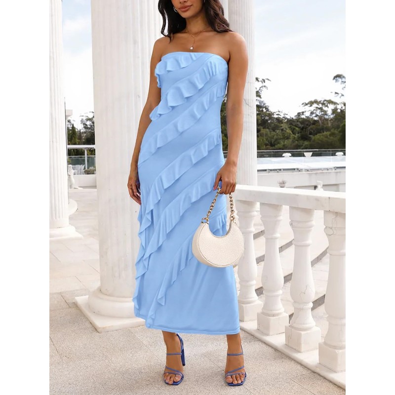 - Design features:Formal long dresses for women designed by Strapless,Ruffles Element,Solid Color,Sleeveless.These sexy elements are perfect for you to attend clubs and parties